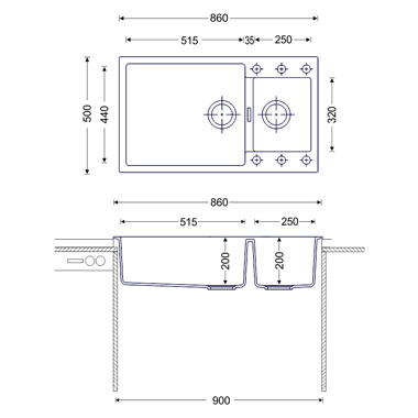- Kích thước cắt đá : 840x480 mm