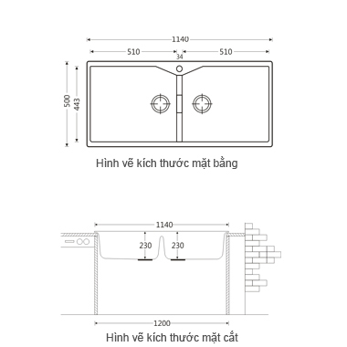 - Kích thước cắt đá : 1120x480 mm