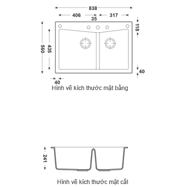 - Kích thước cắt đá : 780x480 mm