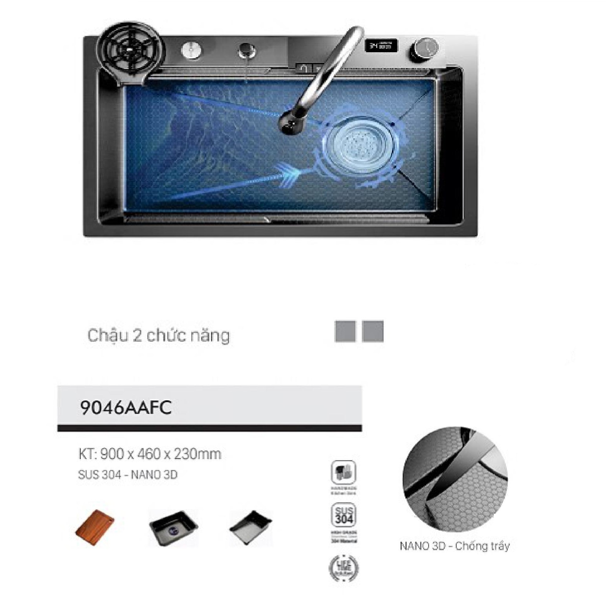 - Chất liệu INOX SUS 304 - NANO 3D chống trầy