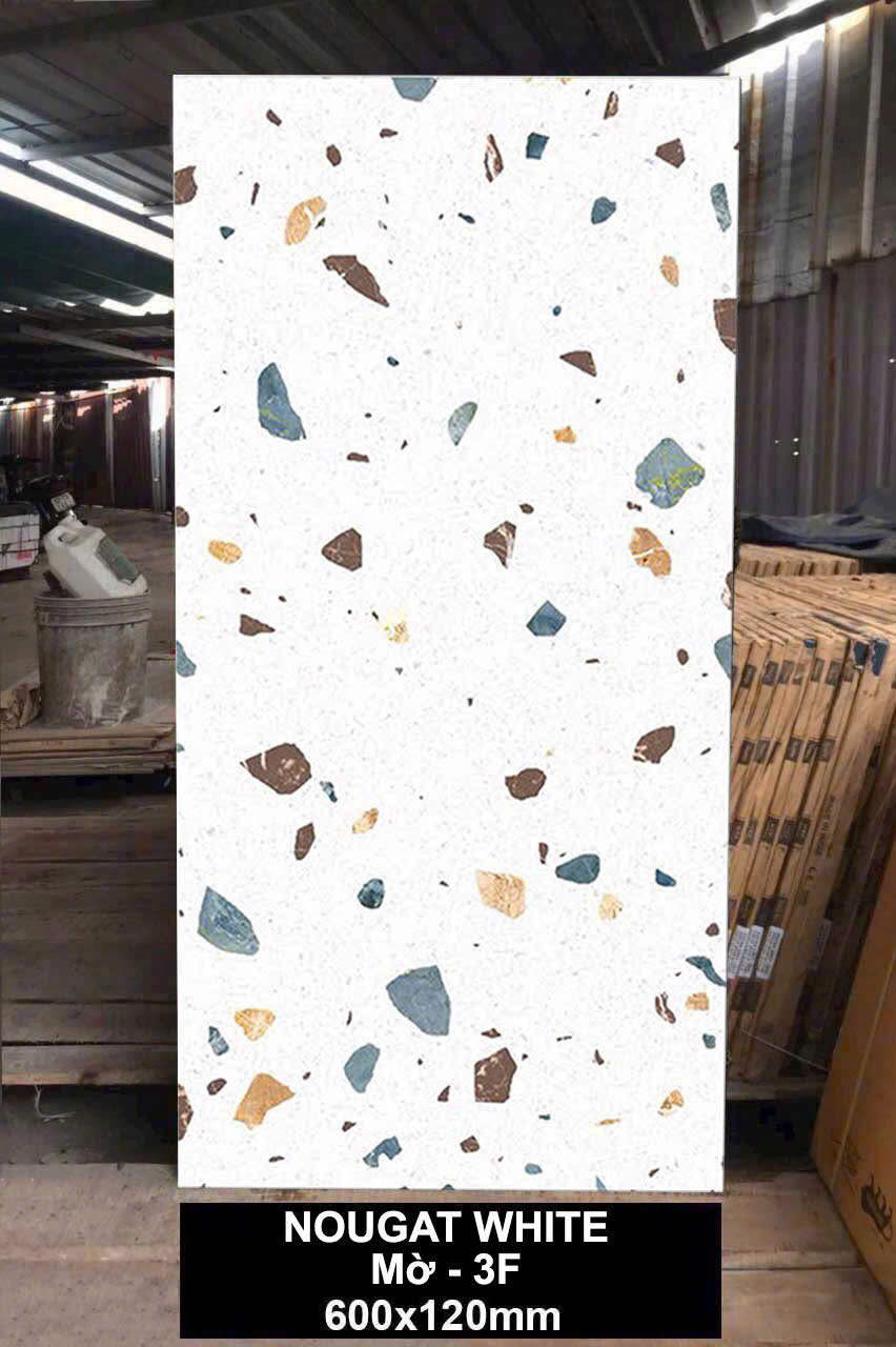 - Gạch Ấn độ 600x1200 terrazzo NOUGAT WHITE