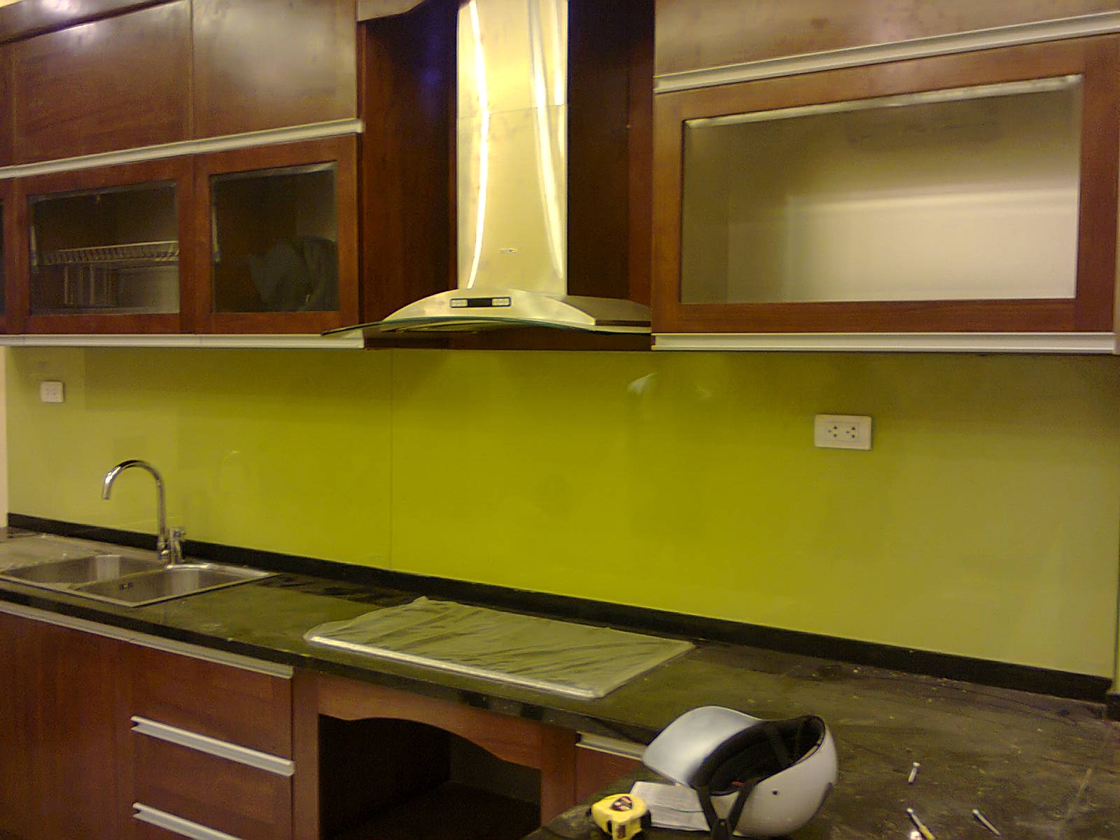 Quy trình thực kiện ốp kính màu cho bếp của chúng tôi: