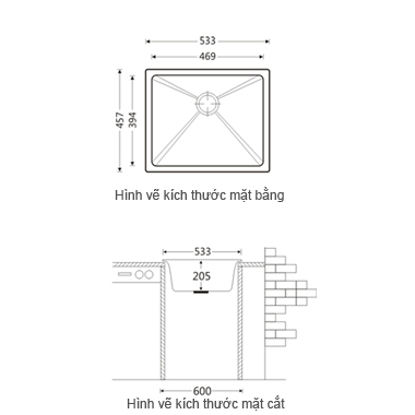 - Kích thước cắt đá : 513x437 mm